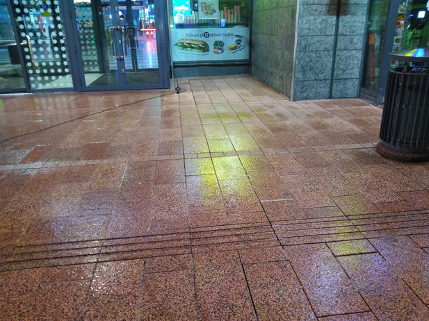 Terassien ja sisäänkäynnin edusta pesut korkeapaineella ja höyryllä